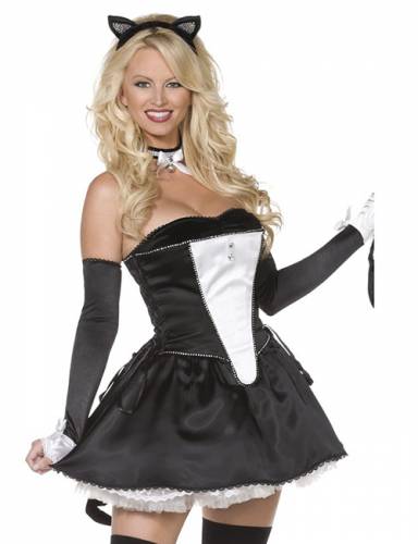 Костюм женщины кошки очень сексуальный, но что если его соединить с костюмом французской горничной? Получится эта шикарная модель, что на фото. Оригинальный вариант французской горничной и одновременно женщины-кошки. Весьма привлекательно и забавно, а главное максимально женственно и вызывающе.